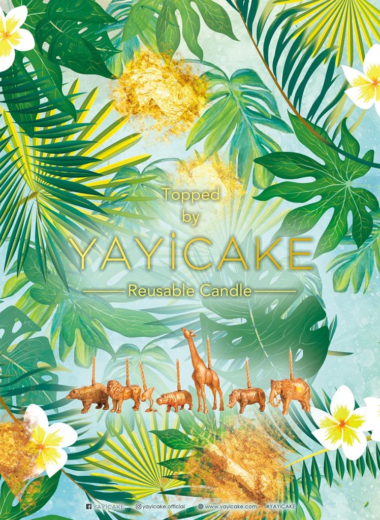 使用熱帶叢林與野生動物為主要視覺語彙,透過大量綠色植栽、層次葉片與金色元素,營造自然、生命力與探索感。