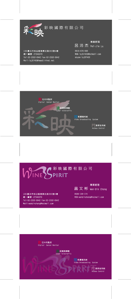 「彩映」以影像顯示的本質為概念,從RGB三原色發想,象徵影像訊號、資訊與系統整合的專業與穩定。